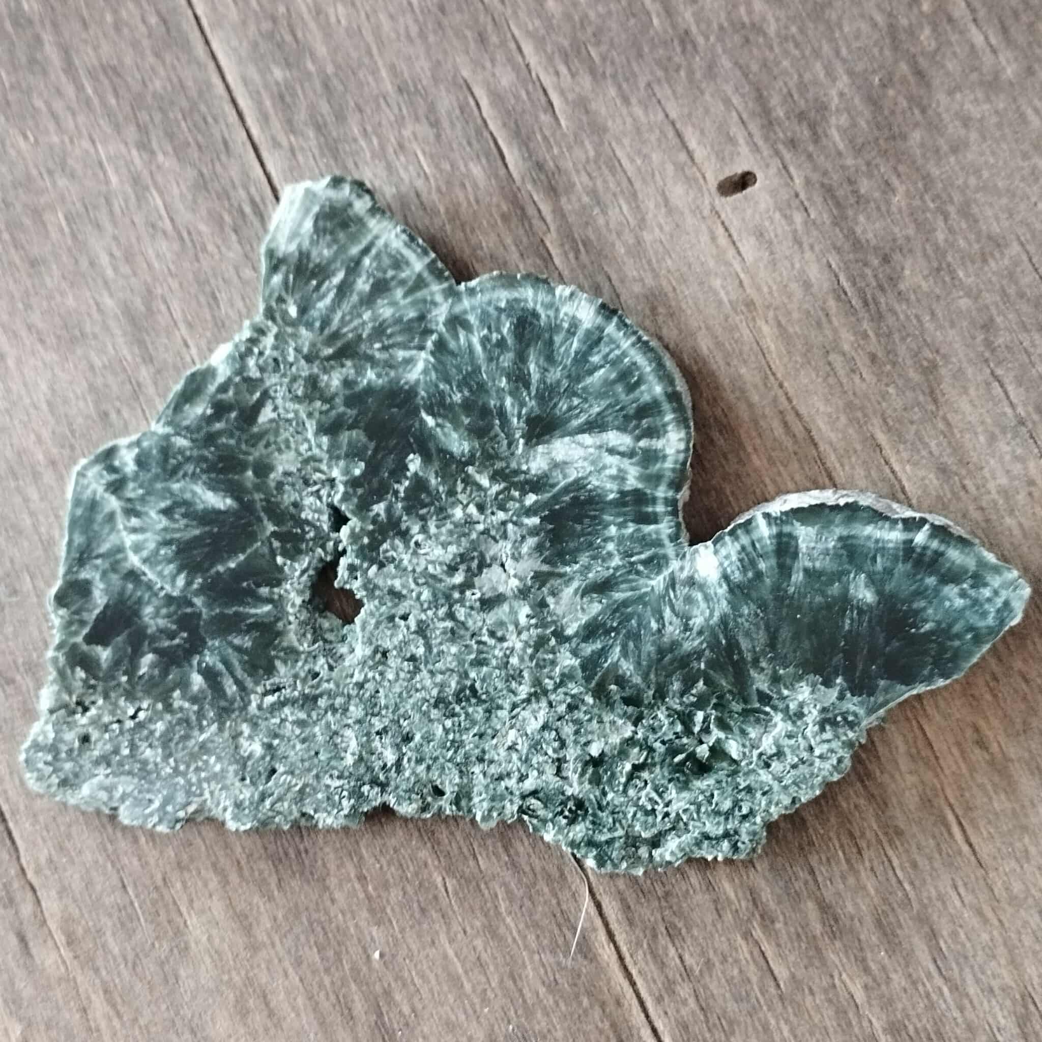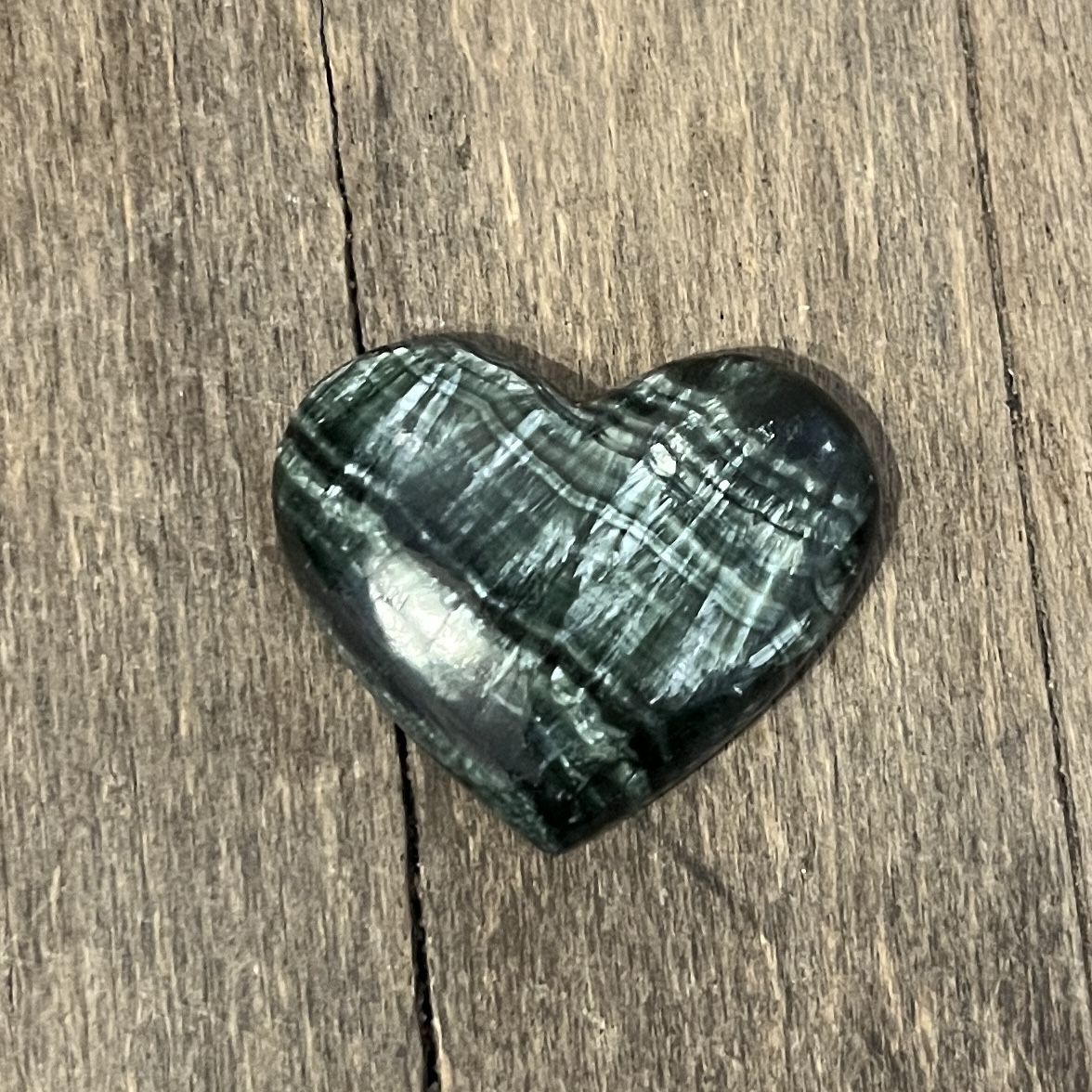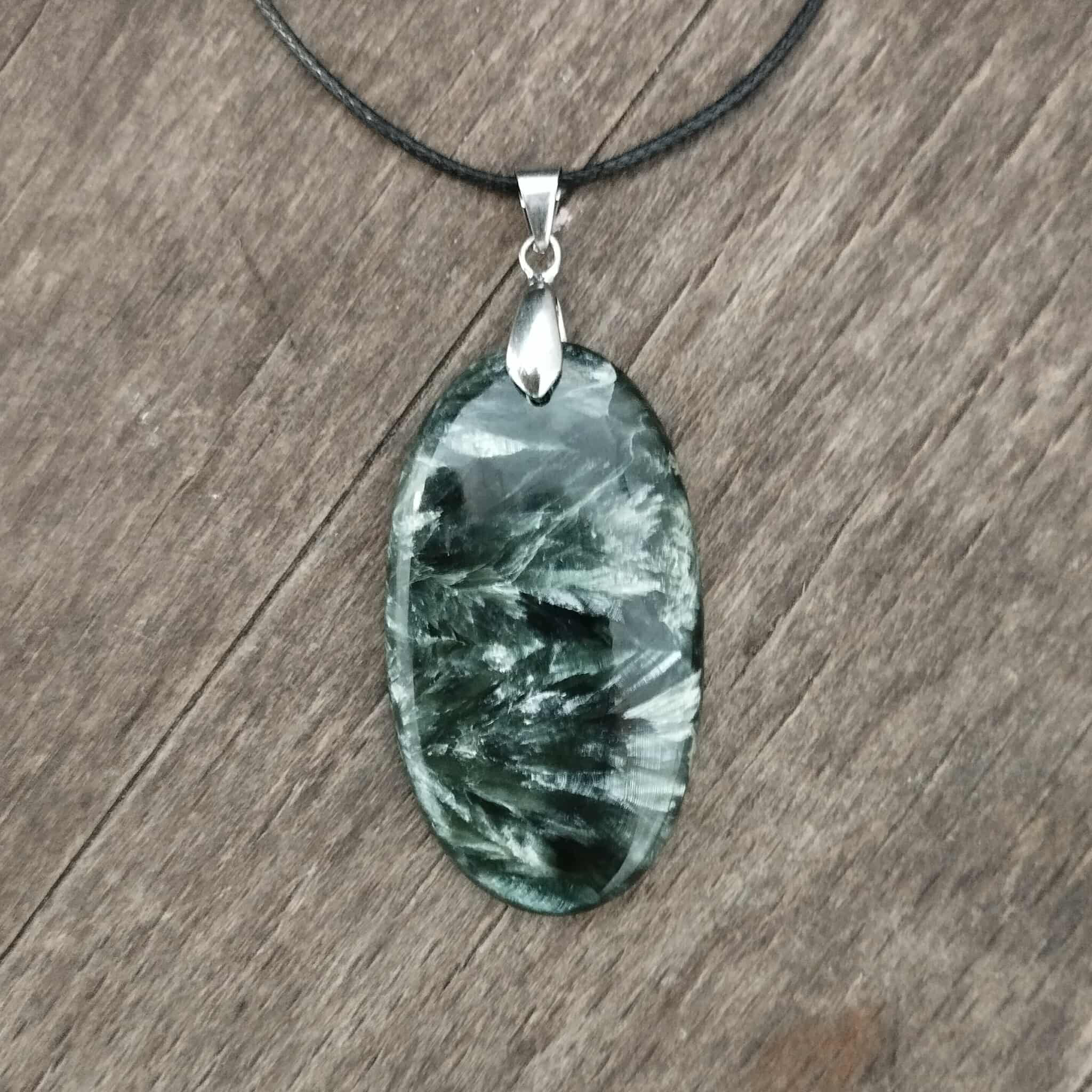 La Séraphinite est une pierre très spirituelle qui provient uniquement de Sibérie (Russie). Elle est connue pour sa haute vibration angélique, son pouvoir de guérison et de lâcher prise. Elle est très douce et puissante à la fois, comme la Charoïte ( qui provient de la même région), elle a la capacité d’isoler les énergies extérieures, ce qui fait d’elle une bonne pierre de protection.